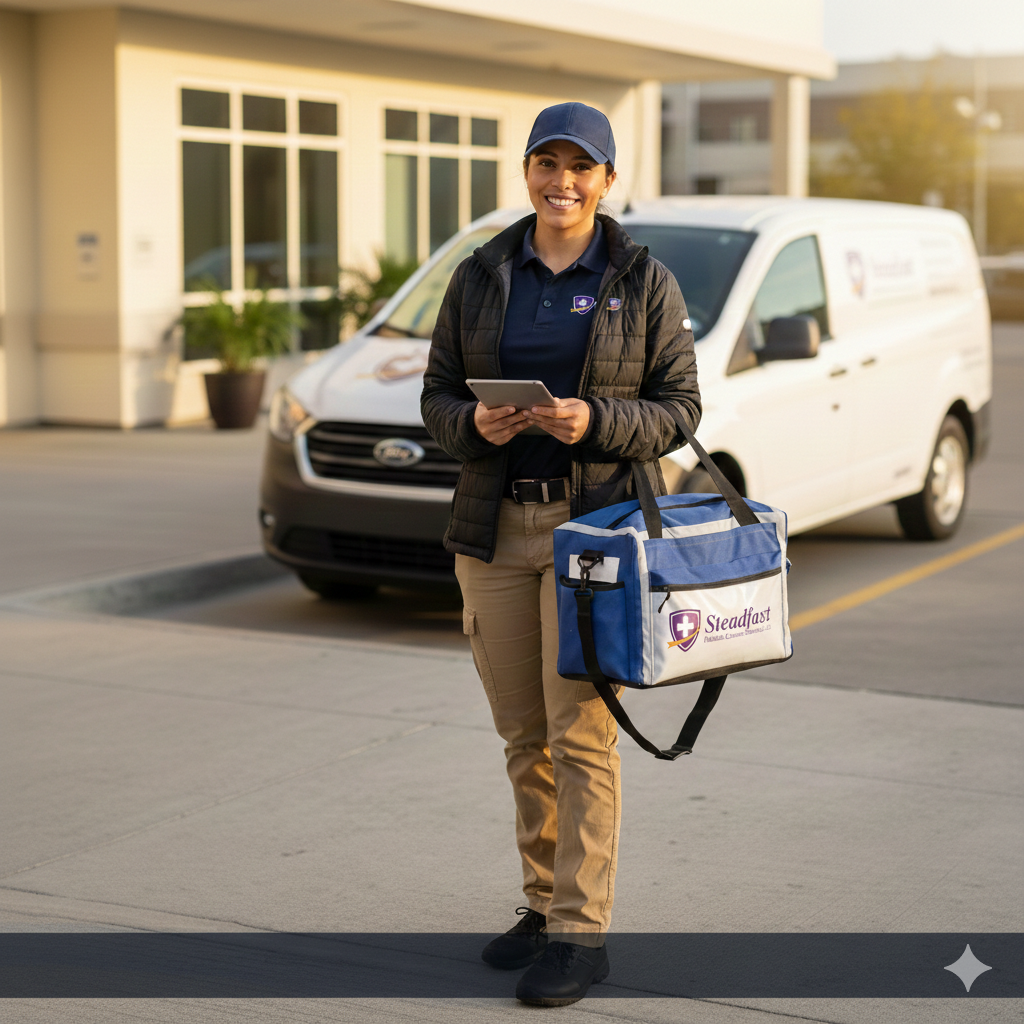 Steadfast Medical Courier Services, LLC is a founder-led medical courier service dedicated to the safe, timely delivery of critical medical specimens, medications, and confidential documents with precision and compassion. We understand that behind every delivery is a patient waiting for care, which is why precision, compassion, and accountability guide everything we do.